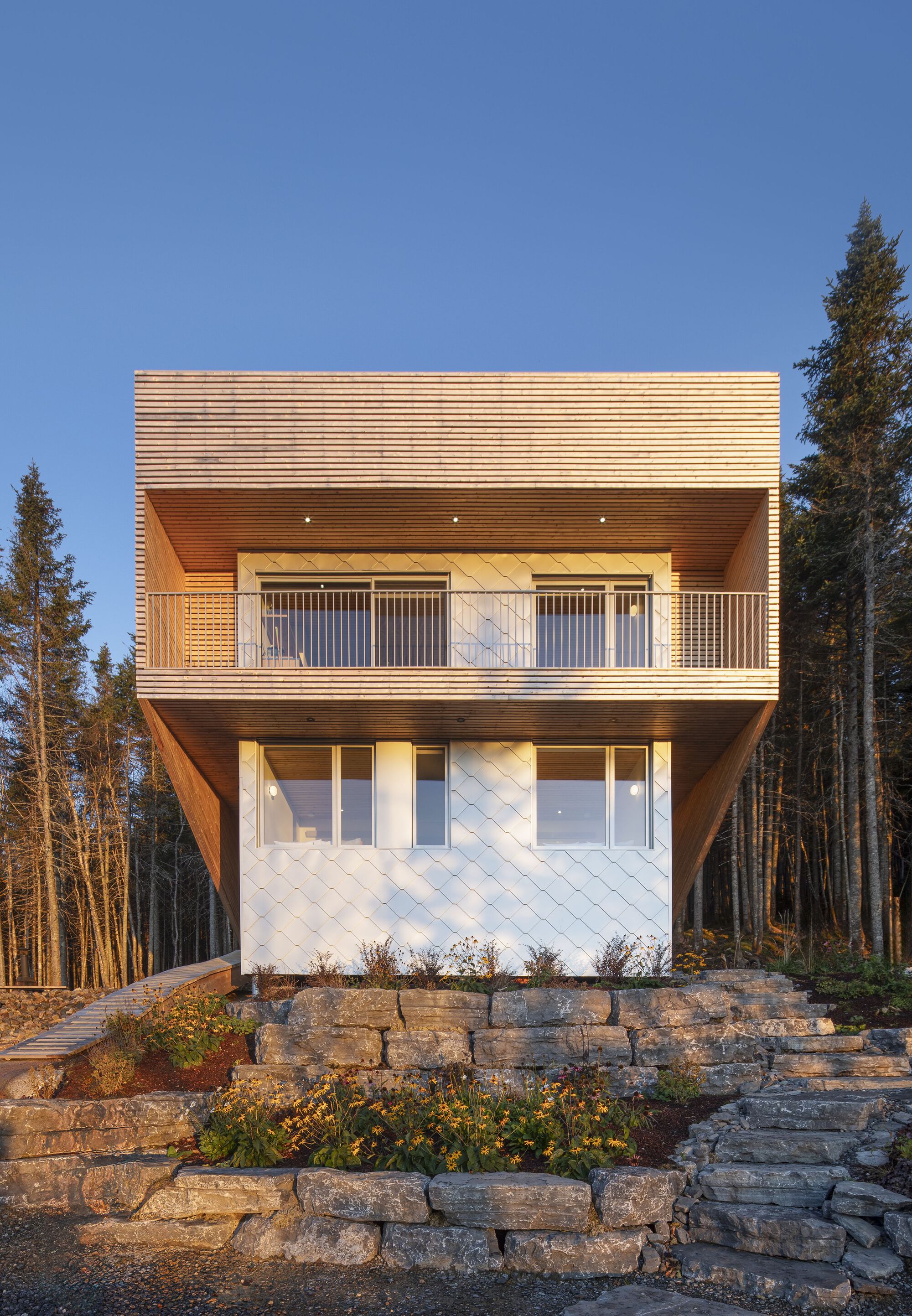 このプロジェクトは、補完的な機能を持つ 2 つのボリュームの出会いを中心に展開します。 1 つ目は、東部のタウンシッパー タイルで覆われた金属製のボリュームで、内部スペースとスパ付きの屋上テラスを収容するために 3 階建てになっています。その輪郭は敷地の自然な傾斜に適応しており、ゆったりとした欄干によってスパを風やのぞき見から守る平行四辺形の形を形成しています。