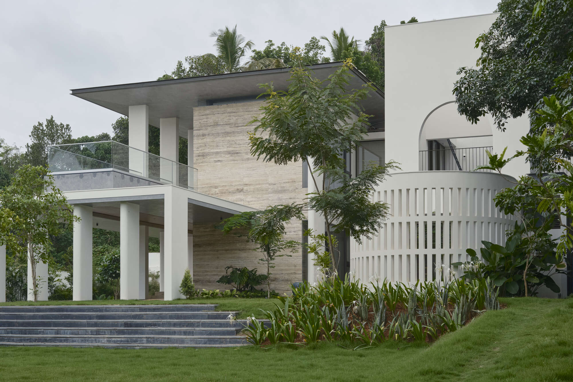 建築家によって提供されたテキストによる説明。この邸宅は、ケーララ州カンヌールの趣のあるマサマンガラム村にあります。敷地の高い地形は、緩やかな上り坂と広大な前景と相まって、邸宅に近づくにつれて期待感を与えます。この上昇する旅は、居住者を自然環境と結びつけ、家を段階的に体験できるようにします。