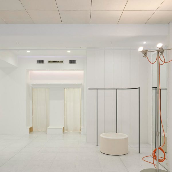 このブティックは、渋谷区にある既存の小売スペースを引き継いだもので、以前のテナントが内装をほぼそのまま残し、展示家具や内部表面の多くは機能的な状態のまま残されていた。