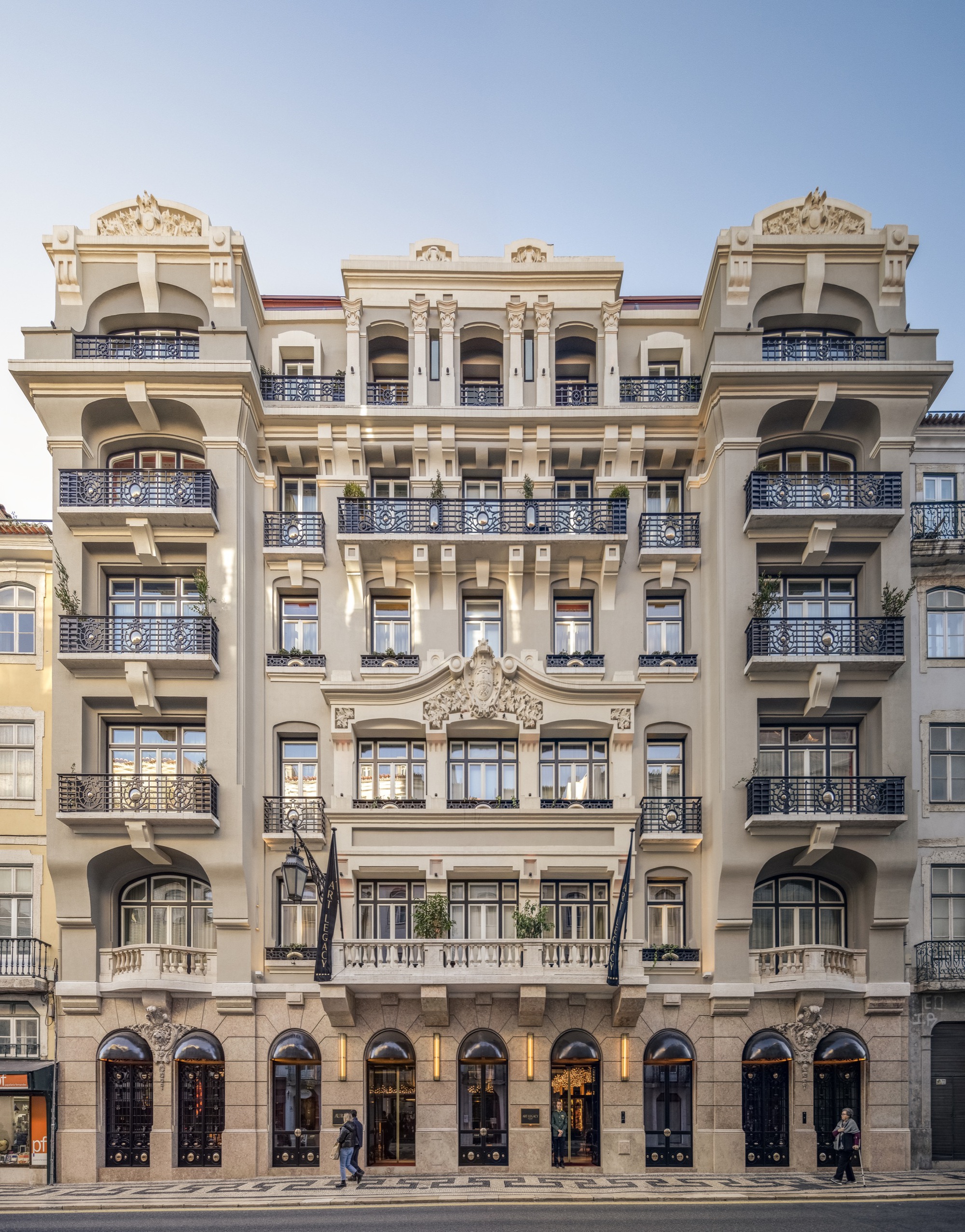 このプロジェクトは、Rebelo de Andradeがインテリアデザインだけでなく、ファサードを再設計し、それをアートレガシーホテルに変えた歴史的なオフィスビルの改修です。