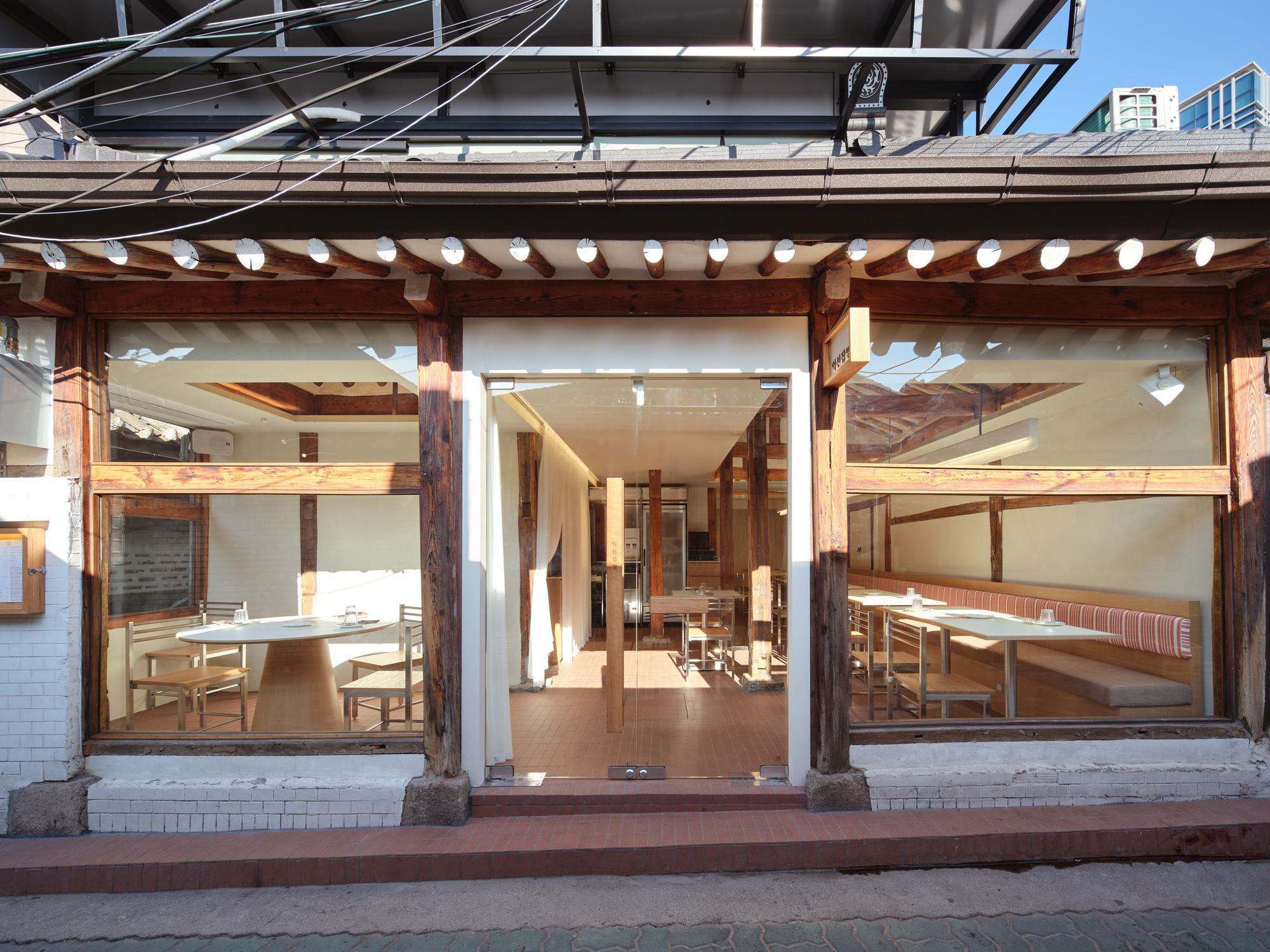 建築家によって提供されたテキストによる説明。益善ジャバンは「韓屋で温かい雰囲気でブランチを楽しむ体験をどのように表現できるだろうか」という課題をもとにデザインを開発した。まずは「ブランチを楽しむ時間」について考えてみました。私たちにとってブランチとは、ただ「食べる」というよりも「楽しむ」ことに近いものです。平日の慌ただしい朝とは対照的に、休日の朝にゆったりとブランチを楽しむ時間。日々の喧騒の中で感じることのできない、太陽の温もりやそよ風を感じられる、静けさとくつろぎに満ちたひとときです。一日の始まりへの期待に満ちた、そんな気楽な時間を、来館者に安心して感じていただける空間づくりを目指しました。