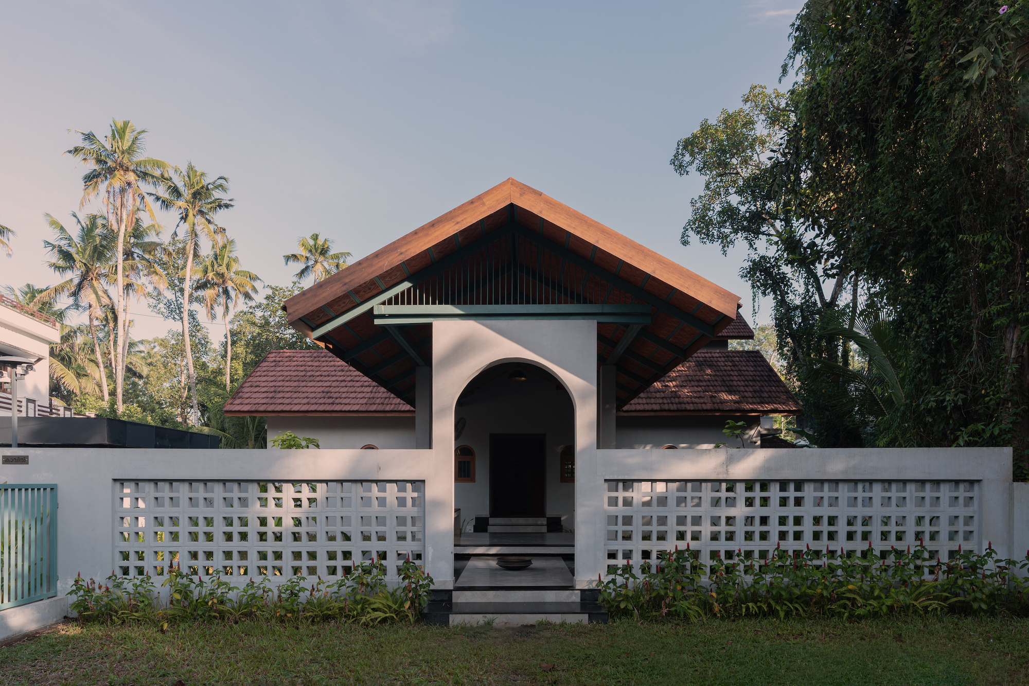 建築家によって提供されたテキストによる説明。ケーララ州の伝統の本質である神聖な木立、カーヴの近くに位置するこの住宅プロジェクトは、面積 2,520 平方フィートで、周囲の文化的重要性と伝統的な建築デザインが調和的に融合されています。この敷地は自然の恵みに包まれており、そびえ立つ木々、鬱蒼とした葉、環境に配慮した設計アプローチを促す固有の静けさが特徴です。