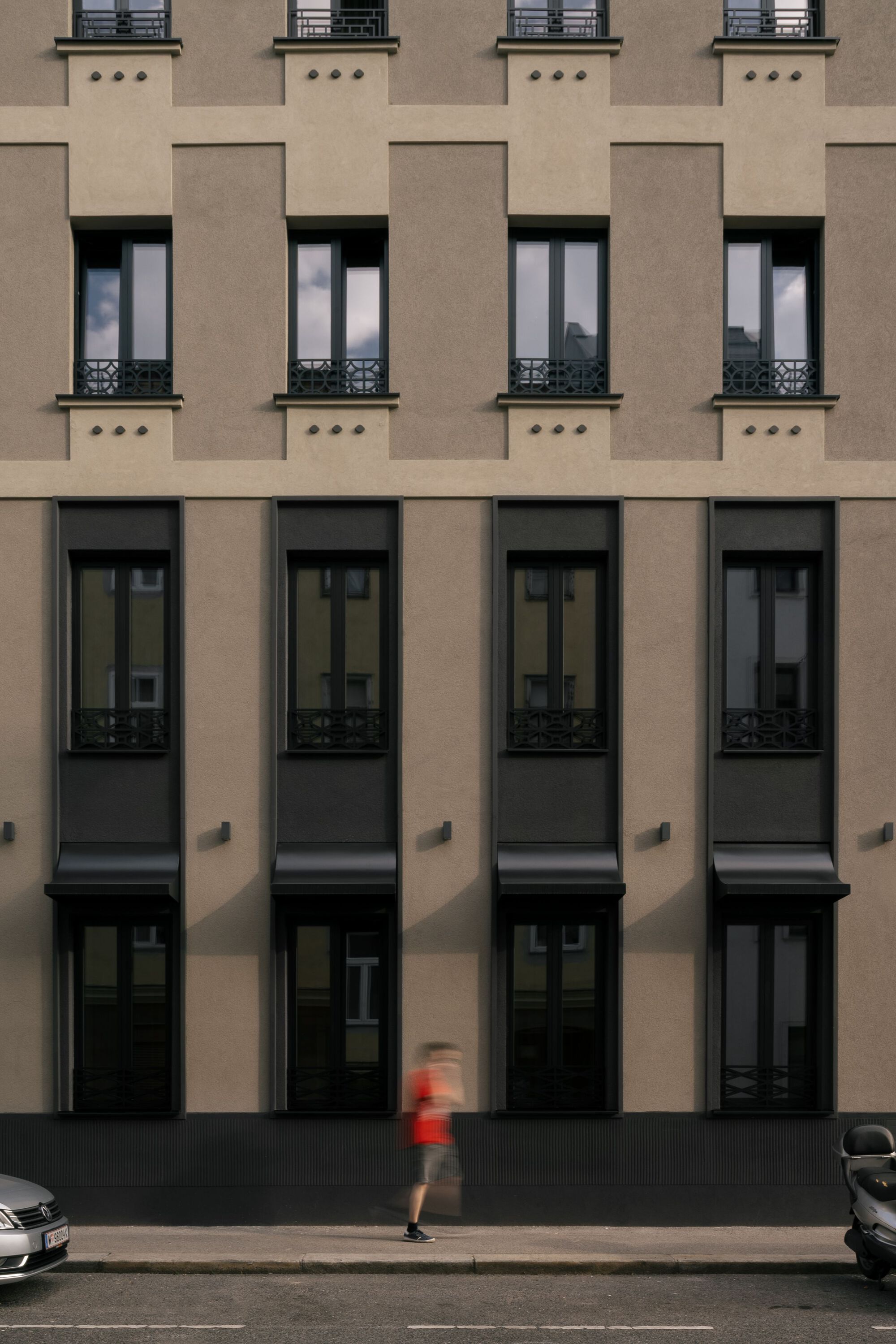 建築家によって提供されたテキストによる説明。ホテル ヴェルト ウィーンは、「ウィーン工房」の精神を現代に伝えることを目的として設計されました。この建物は、20 世紀初頭に建てられた長屋で、ウィーン 12 区の目立つ角に位置しています。デザインは伝統を尊重しながらもモダンなデザインを取り入れ、歴史的なスタイルの要素を現代的な方法で再解釈することに重点を置いています。
