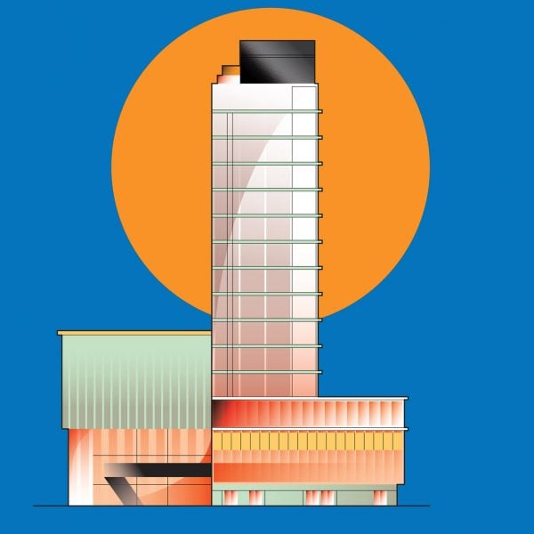 20階建てのホテルの周りに編成されたブロックのクラスターには、ホテル、劇場、ギャラリー、図書館、博物館があり、その規模とさまざまな用途の両方で、街の真のランドマークの目的地になっています。