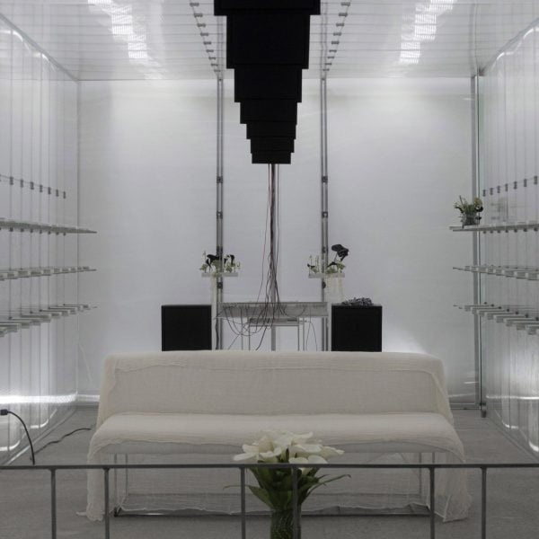 Xpan は、透明なポリカーボネート パネル、アルミニウム、スチールの無駄を省いたマテリアル パレットを使用することで、Xpan.Ep.1 の狭い設置面積内に「単調さと単色性」の感覚を生み出しました。