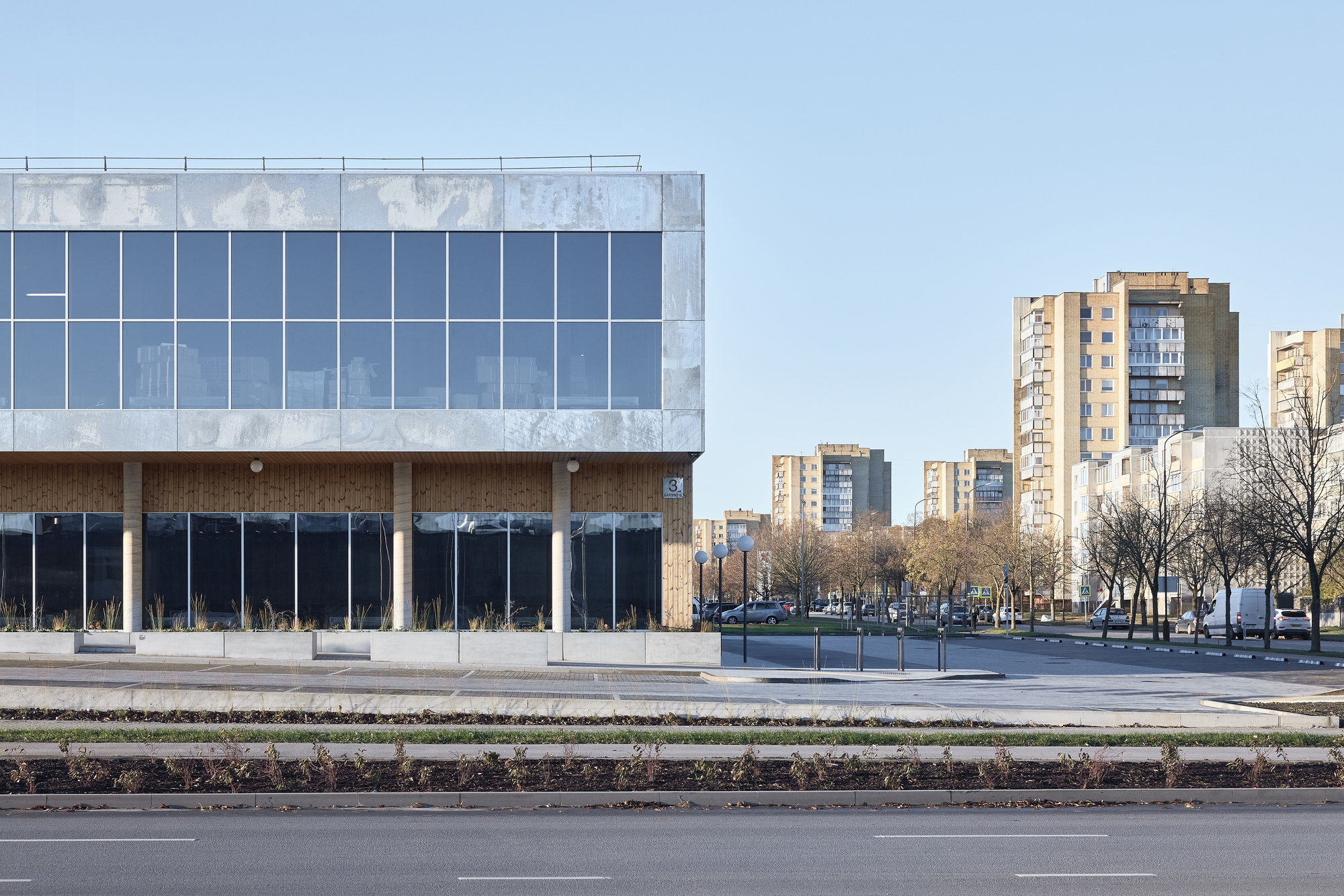 建物の設計は、材料の自然なテクスチャーを強調し、慎重に融合しています。露出したコンクリートのスケルトンは、耐久性と持続可能性を確保しながら、建物の産業的な外観を維持しながら、耐え性のある亜鉛メッキ鋼の外皮に包まれています。歓迎的で暖かい雰囲気を作り出すために、歩行者の訪問者の流れに直面するファサードは、豊かで暖かい木材で覆われています。この材料のコントラストは、建物の審美的な魅力を高めるだけでなく、構造の産業性を和らげるのにも役立ち、コミュニティにより魅力的になります。