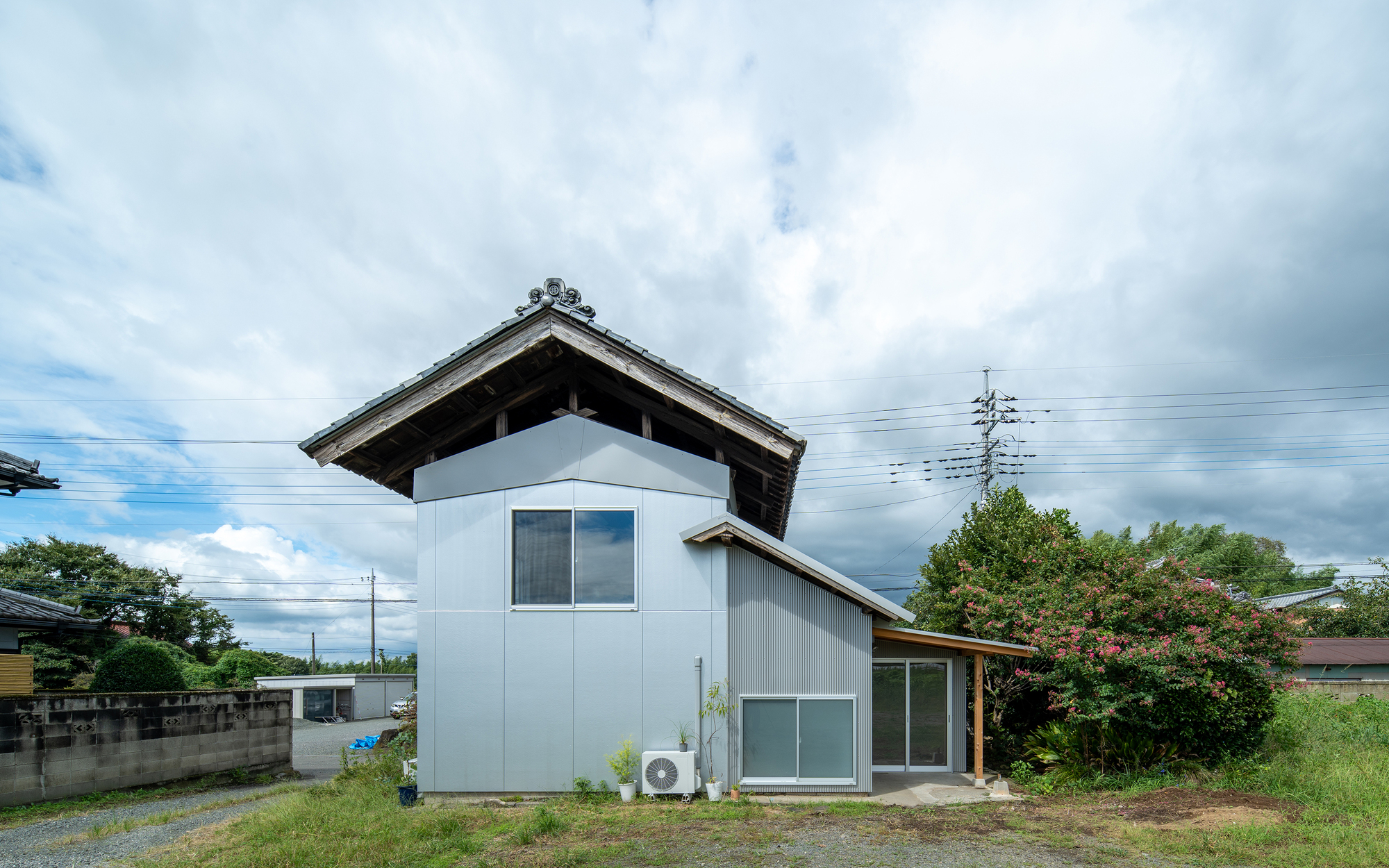 建築家が提供するテキストの説明。このプロジェクトは、農地に囲まれたアカギ山のふもとにある町にある古い倉庫の改修です。クライアントは、中古の家への添付ファイルとしてサイトに残された倉庫を買収し、自分のビジネスのオフィスとして使用する予定です。
