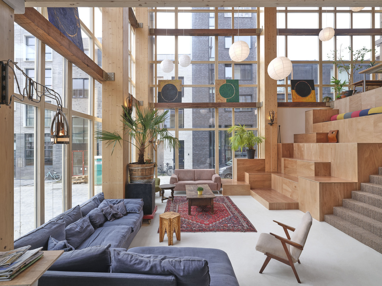 アムステルダム初のセルフビルド住宅協同組合として、De Warren は社会的かつ手頃な価格の賃貸住宅専用の 36 戸のアパートを備えています。エネルギーを積極的に活用する建物として設計され、木造建築と材料の再利用を通じて、この開発は都市でアクセス可能な持続可能で低コストの生活を提供します。実際、建物の 30% は、講堂、多目的室、子供用プレイルーム、音楽スタジオ、共同作業スペース、瞑想室、温室、屋上テラス、共同キッチンなどの共用スペースで構成されています。これらの集合スペースは中央の「マチュピチュ」階段沿いに戦略的に配置されており、日常の交流を促進し、住民間の接触を最大限に高めています。