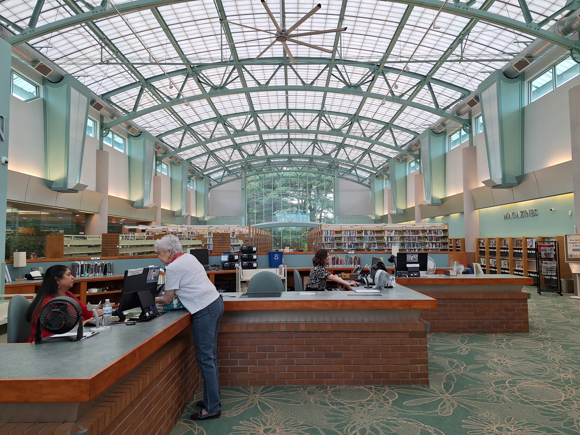 この最初の決定のマイナスの影響を修正するために、図書館は屋根の改修を受け、ポリカーボネートパネルを元々指定されたKalwall半透明のFRPパネルに置き換えました。これらのパネルは、600平方フィート(56m²)に及ぶ隣接するバタフライガーデンの太陽屋根を含む、14,000平方フィート(1,300m²)以上の内部スペースをカバーしています。この介入により、建物の熱パフォーマンスが向上しただけでなく、エネルギー消費と運用コストが低下するだけでなく、光の品質と居住者の快適性も向上しました。