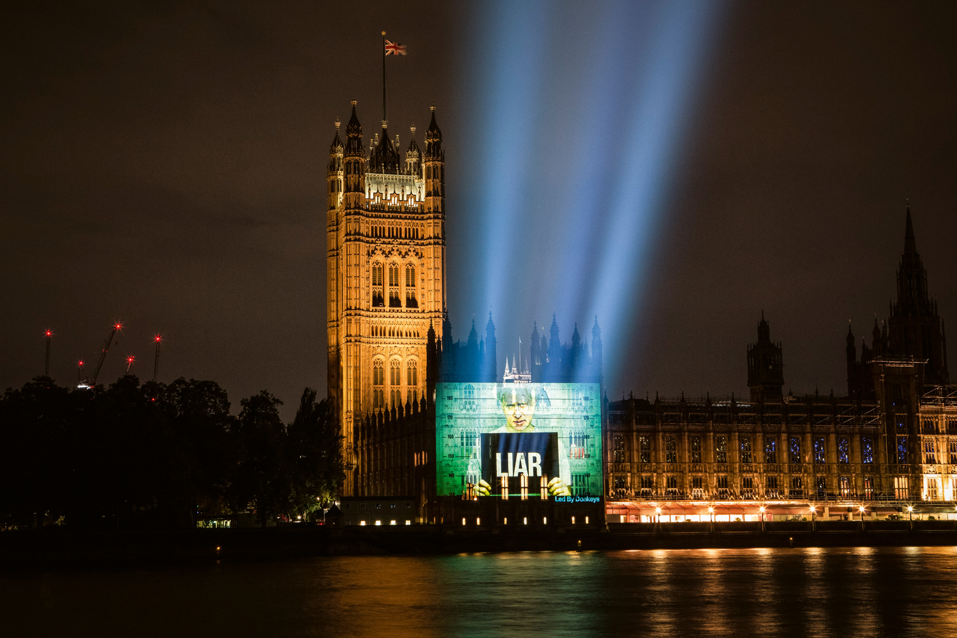ロバが率いる看板を超えて媒体を拡大することで、光の可能性が調査されました。彼らは2つのデジタル広告バンから始まり、特にナイジェル・ファラージの「行進するための行進」をターゲットにした政治家からのツイートと宣言を表示しました。突破口は、投影オペレーターが印象的な明確さで広大な表面に画像をキャストできる強力な新しいプロジェクターを提供したときに起こりました。この技術的変化は、視覚言語の新しい章を導き出し、都市空間に永続的な物理的変化を必要としない迅速で大規模な介入を可能にしました。