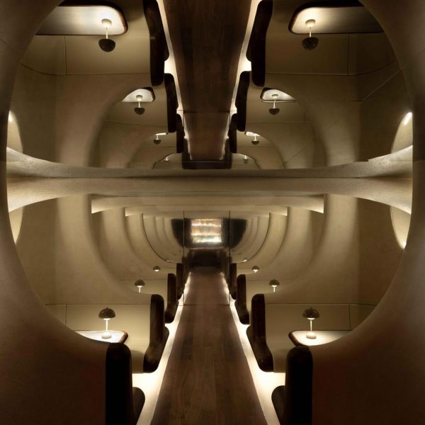このプロジェクトは、2024 年の Dezeen Awards で建築照明デザイン オブ ザ イヤーの最終候補に挙げられており、地下貯水池のアーチや丸天井、SF 宇宙船やブルータリズム建築を参照しています。