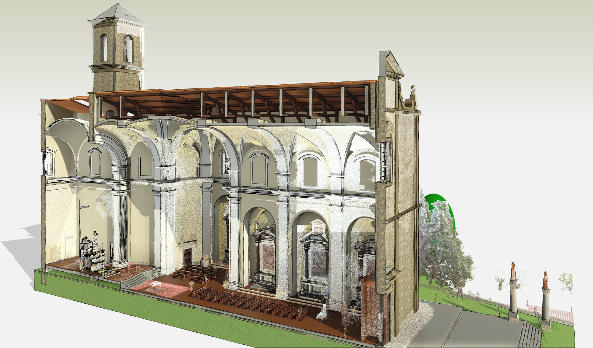 私のもともとの専門分野は、手描きからコンピューター レンダリングやアニメーションに至るまで、建築のビジュアライゼーションでした。私の魅力の一部は、仮想 3D 復元を通じて、現在は廃墟となっている古代建造物の元の形状を示すことにありました。イタリアのヴォルテッラには、紀元前 1 世紀のローマ劇場の残骸が残っていますが、今日ではその構造はほとんど完全な形で残っています。本来の姿を想像してみたかったのです。 CAD 3D モデルを作成するには、それが最初にどのように設計されたかを理解する必要がありました。しかし、過去の手による測定から得られた既存の文書は、図面間に大きな差異があり、混乱を招くものでした。 – ヴラデク・フックス教授