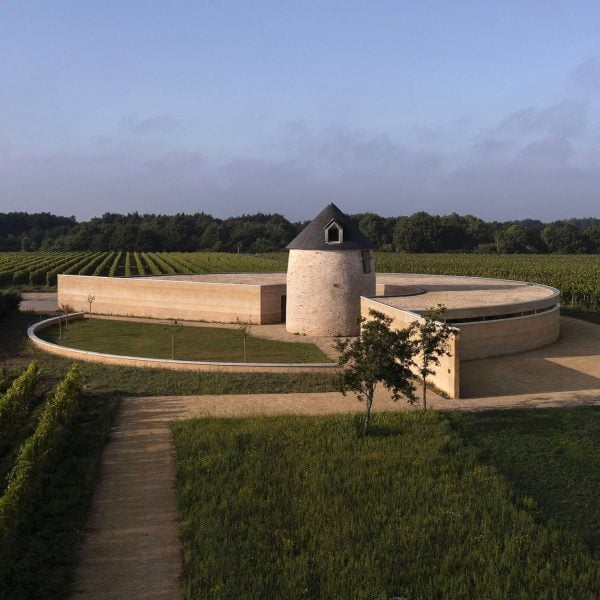 地元のスタジオ、カルメン モーリス アーキテクチャーは、フランス北部のブドウ畑にある古い工場の周囲に半円形のワイナリーを取り囲み、その計画はワイン造りの循環的なプロセスを反映しています。