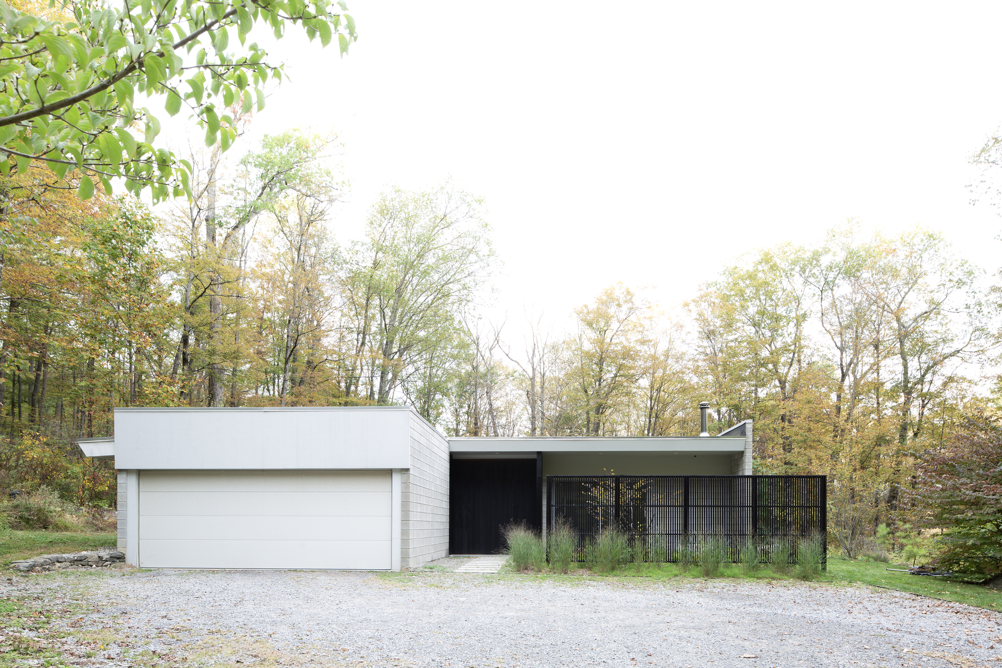 モノリシックなCMU(コンクリートブロック壁)とのコントラストを生み出します。これにより、リビングルームからのカーポートの眺めをブロックしながら、狭い玄関通路と庭を分離します。ピエトラ ロイヤルの踏み石を登ると、隠された黒ずんだ杉の入り口ドアにつながります。アプローチはスラットフェンスを通して庭に頂上を与えます。京都の茶館に続く小道のような静謐な環境で、立ち止まって体験するひとときを演出するためです。すっきりとしたモノリシックな外観をさらに強調するために、隠された樋が追加されました。