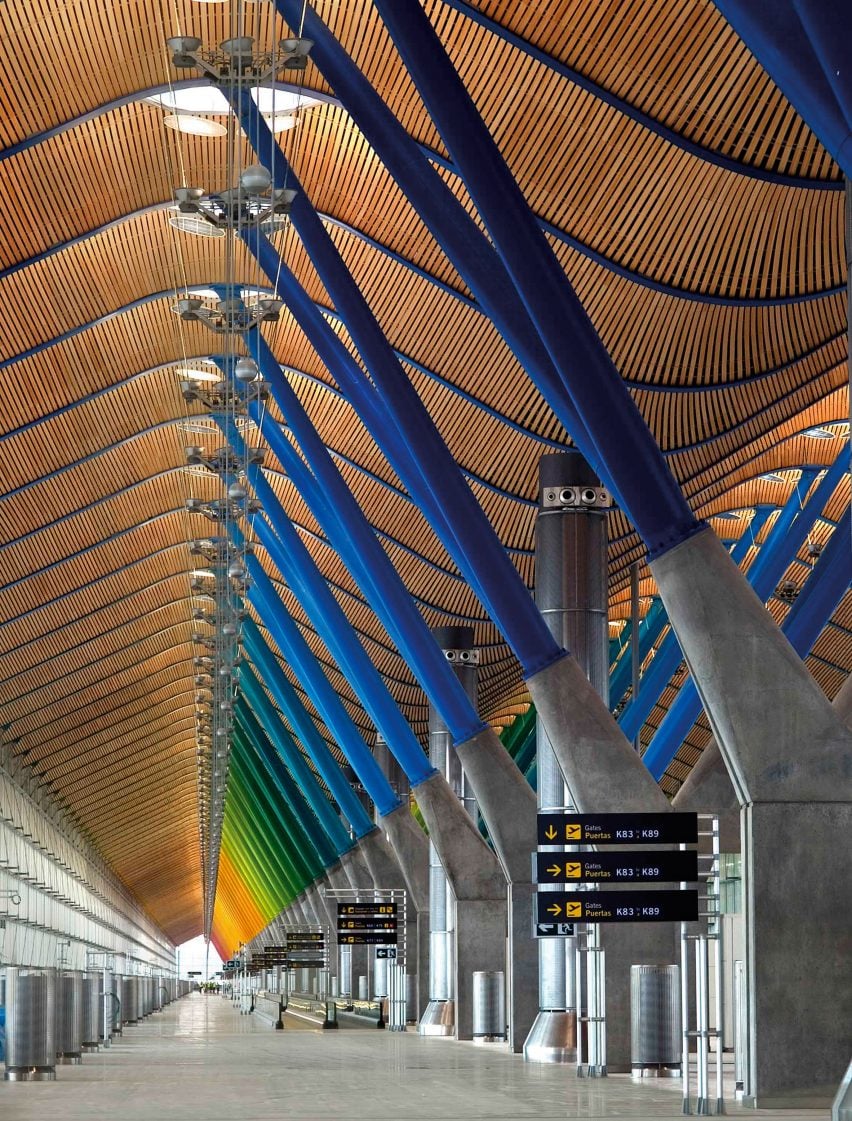 マドリッド バラハス ターミナル 4 は、波状の竹を並べた屋根、広々とした天窓、色鮮やかな柱を備え、匿名性、均質性、一般的に不快感を伴うことが多い空間である空港ターミナルを人間らしくするという稀な偉業を達成しました。